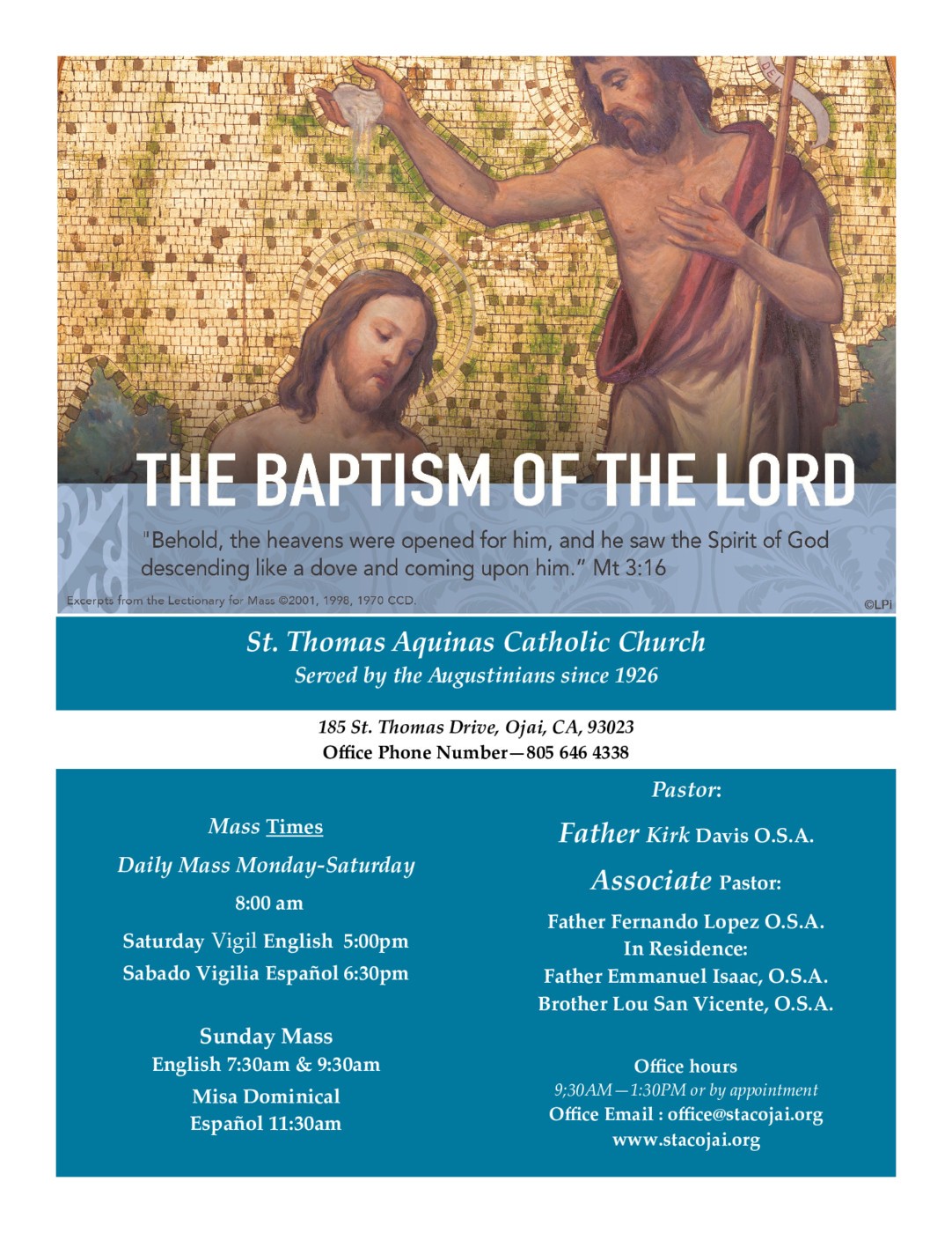 We are an active Christian community in the Ojai Valley and invite you to join us in our mission to live the Gospel message. Listed below are some of the more recent news and updates. Please join us at Mass this week for worship, fellowship and celebration of God’s great love.